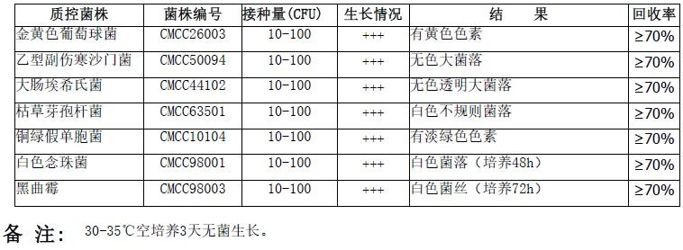 注:回收率计算时,用TSA琼脂做对照培养基。