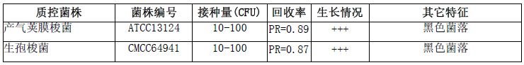 按标签用法制备培养基,接种以下质控菌株,放置36±1℃厌氧培养18-24小时。