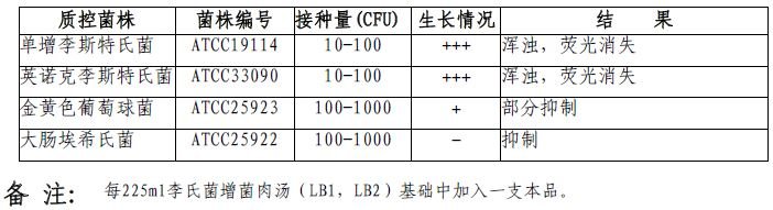吖啶黄素(2.7mg)微生物灵敏度试验:按标签用法制备培养基,接种以下质控菌株,放置30±1℃需氧培养18-24小时。