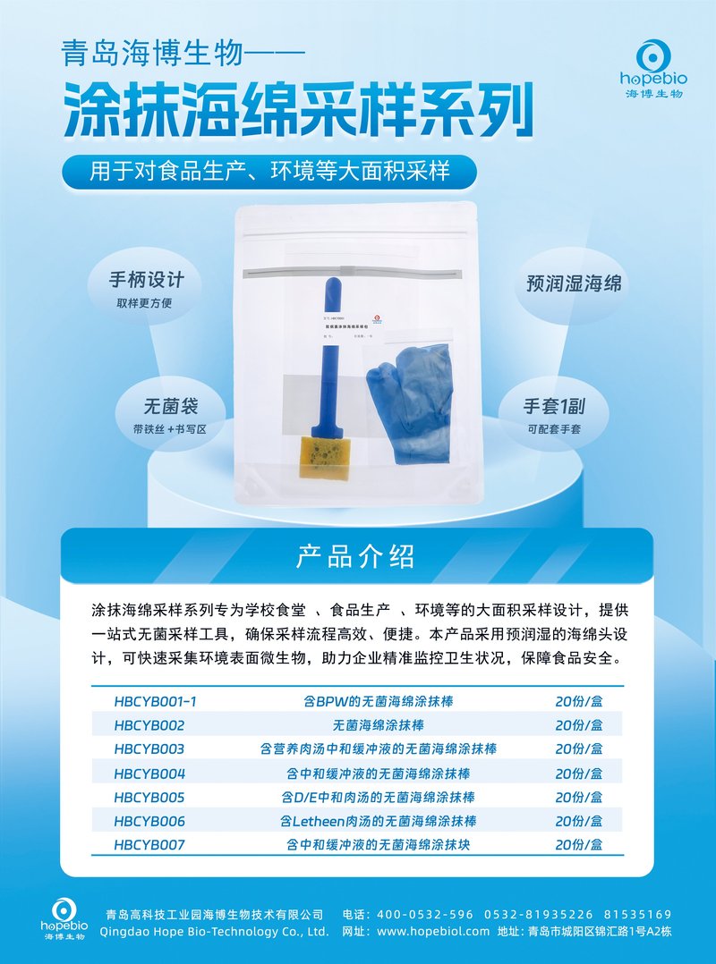 含BPW的无菌海绵涂抹棒/用于学校食堂环境检测大面积采样