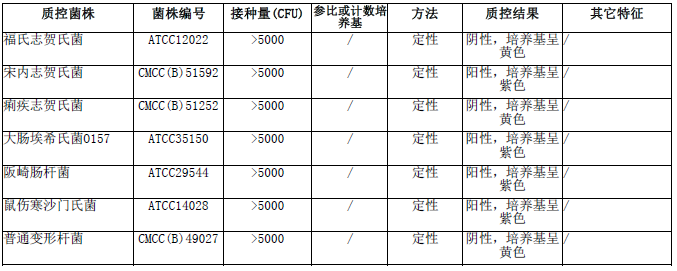 鼠伤寒沙门氏菌、阪崎肠杆菌、大肠埃希氏菌0157、宋内氏志贺氏菌阳性,培养基呈紫色。
