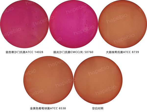 䏡蛋白胨、酪蛋白胨、酵母粉为微生物的生长提供碳源、氮源、维生素和生长因子,满足细菌生长的需求;氯化钠维护微生物细胞的渗透压;乳糖和蔗糖为可发酵的糖类;苯酚红和灿烂绿为酸碱指示剂,苯酚红pH6.8(黄)-8.0(红),灿烂绿pH0.0(黄)-2.6(绿);琼脂是培养基的凝固剂。典型的沙门氏菌不发酵乳糖和蔗糖,利用培养基中的蛋白胨产碱,使培养基变红。