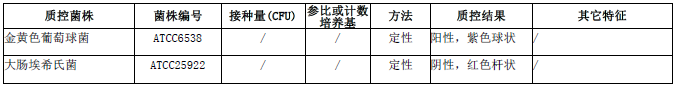 按标签用法制备培养基,接种以下质控菌株,放置/℃/培养/小时。