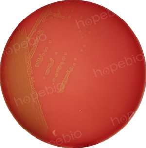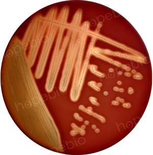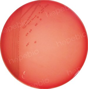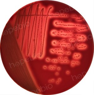 称取本品3.8g,加热溶解于100ml蒸馏水中,121℃高压灭菌15分钟,冷至50-55℃时无菌操作加入5%-10%(V/V)预温至37℃的无菌脱纤维羊血,混匀,倾入无菌平皿。