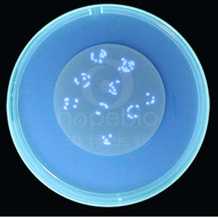 3. 培养后观察荧光(365nm紫外灯照射)。