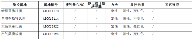 按标签用法制备培养基,接种以下质控菌株,放置/℃/培养/小时。