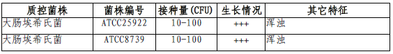 按标签用法制备培养基,接种以下质控菌株,放置36±1℃需氧培养18-24小时。