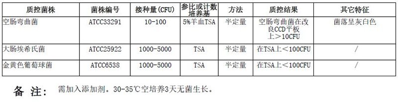 按标签用法制备培养基,接种以下质控菌株,放置42±1℃微需氧培养24-48小时。