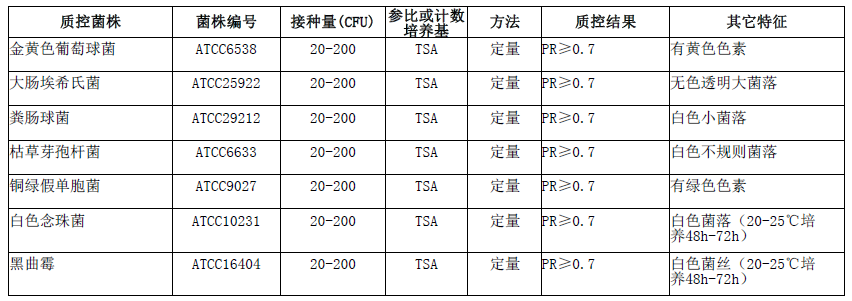 3. 生长能力验证(接种标准菌株后需达到规定生长量)