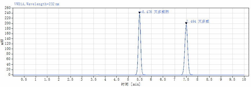 依据JJF1343技术规范(等效ISO35指南),随机抽取分装后的样品采用液相色谱法对溶液均匀性检验、稳定性考察。结果表明,均匀性和稳定性良好。