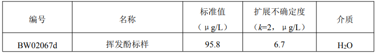 本标准样品用于水中挥发酚的分析测试及宣贯的分析方法确认与评价、实验室质量控制。