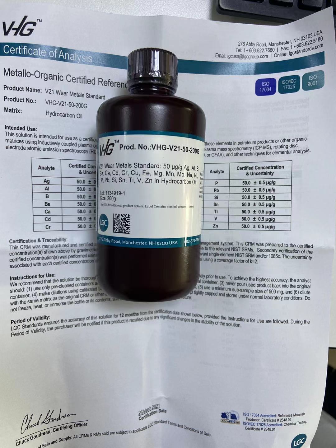 V21磨损金属标准油VHG 200G/V21-500-100G