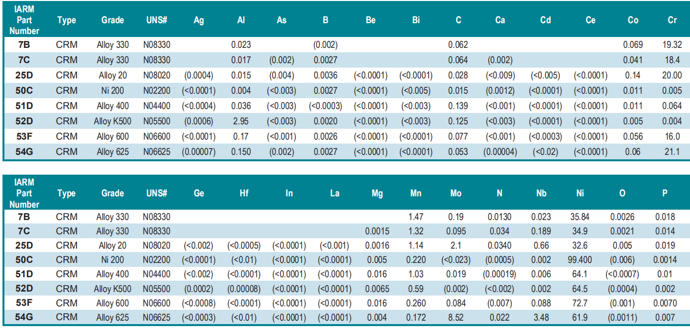 常用镍基标样种类: 包括SUS控样,质控样,和各个系类的镍合金套标,纯镍,镍铜合金(Monel),镍钼合金(Hastelloy),镍铬合金(Inconel)等