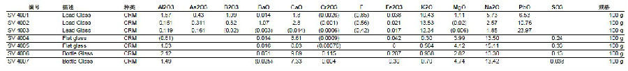 LGC提供以上各种玻璃的标样,用于玻璃的定性分析和定量分析,部分玻璃标样含量如下