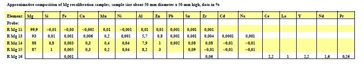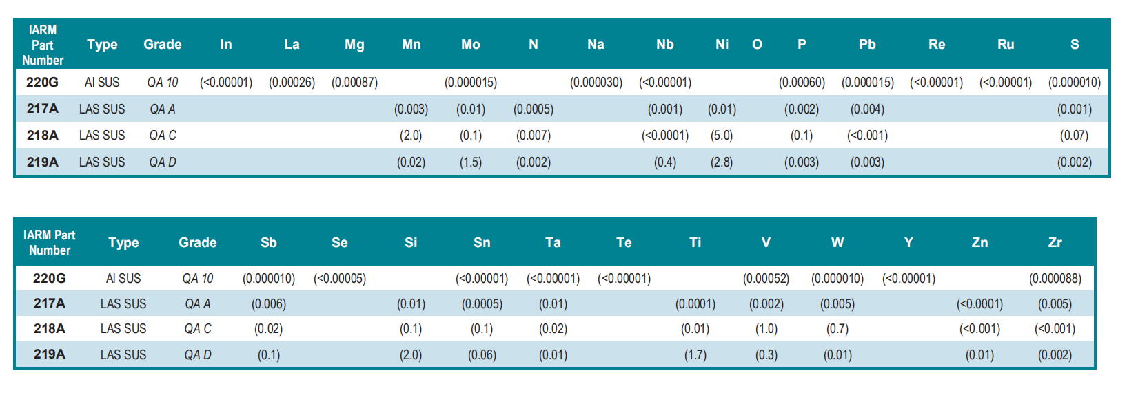 部分SUS样成分含量如下
