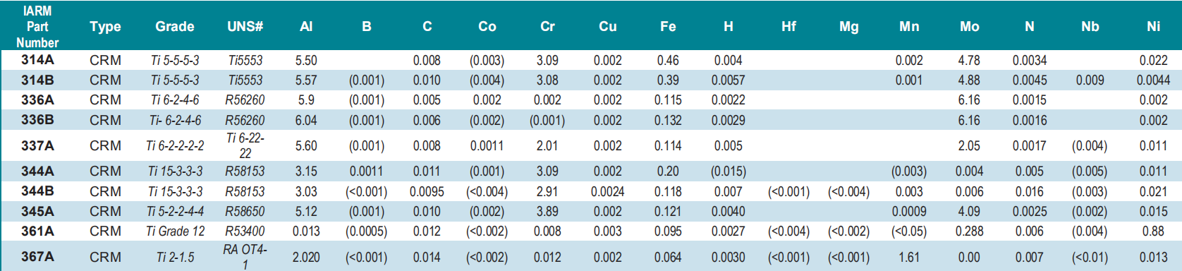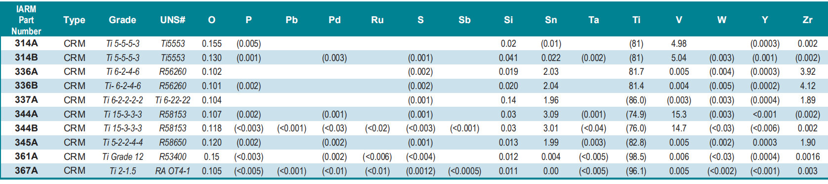 常用钛基标样种类: 包括SUS控样,质控样,和各个系类的钛合金套标,包括Ti-6Al-4V Ti-5Al-2.5Sn Ti-2Al-2.5Zr Ti-32Mo Ti-Mo-Ni Ti-Pd SP-700 Ti-6242 Ti-1023 Ti-10-5-3 Ti-1023 BT9 BT20 IMI829 IMI834等