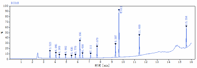 3. 电子捕获检测器(ECD):检测卤代烃特征响应信号