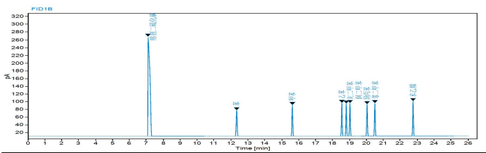 以配制值作为溶液标准物质浓度的标准值,制备的标准物质和质量控制对照样采用气相色谱法-氢火焰离子化检测器(GC-FID)比对计算,核验配制值。通过使用满足计量学特性要求的制备方法、测量方法和计量器具,保证标准物质的量值溯源性。