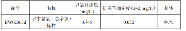 本标准物质用于水中总氯(总余氯)的分析测试及宣贯的分析方法确认与评价、实验室质量控制。
