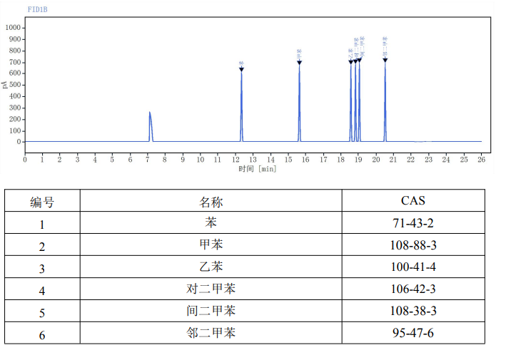 二硫化碳中6种苯系物(标液)(苯、甲苯、乙苯、对二甲苯、间二甲苯、邻二甲苯)介绍: