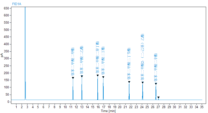 柱箱:80℃(1min),10℃/min→220℃(0min),5℃/min→280℃(8min)