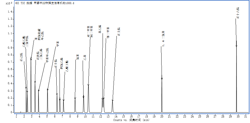 色谱柱:DB-624(30m×0.25mm×1.4μm)
