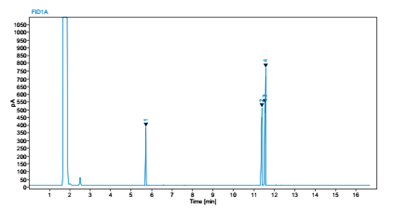柱箱:90℃(1min)→15℃/min→250℃(5 min)。