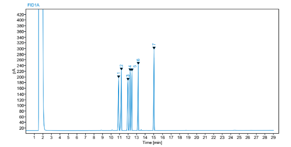以配制值作为溶液标准物质浓度的标准值,制备的标准物质和质量控制对照样采用气相色谱法-氢火焰离子化检测器(GC-FID)比对计算,核验配制值。通过使用满足计量学特性要求的制备方法、测量方法和计量器具,保证标准物质的量值溯源性。