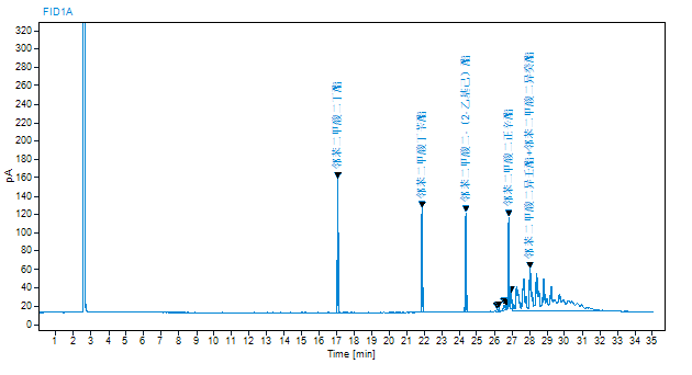 柱箱:80℃(1min),10℃/min→220℃(0min),5℃/min→280℃(8min)