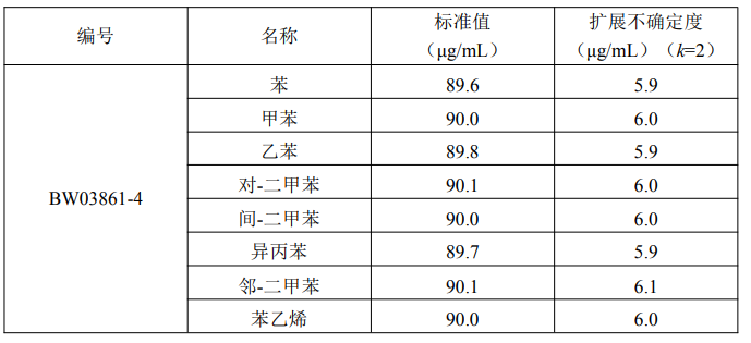 本标准物质以纯度经准确定值的苯系物纯品为原料,以色谱级甲醇为溶剂,采用重量-容量法准确配制而成。