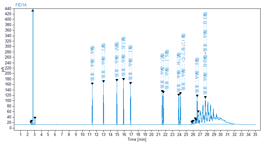 柱箱:80℃(1min),10℃/min→220℃(0min),5℃/min→280℃(8min)