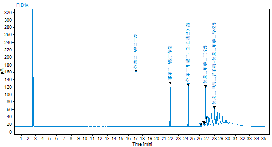 柱箱:80℃(1min),10℃/min→220℃(0min),5℃/min→280℃(8min)