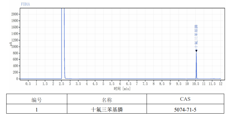 本标准物质以纯度经准确定值的十氟三苯基磷(CAS号:5074-71-5)为原料,色谱纯二氯甲烷为溶剂,采用重量-容量法准确配制而成。