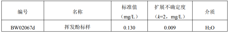 本标准样品用于水中挥发酚的分析测试及宣贯的分析方法确认与评价、实验室质量控制。