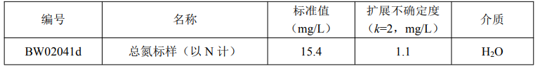 本标准品应按以下程序稀释后方可使用:用清洁干燥的移液管从安瓿瓶中准确移取 10.0mL 标样至 100mL 容量瓶中,用纯水稀释定容至刻度,混匀后立即使用。稀释后的标准值和扩展不确定度为: