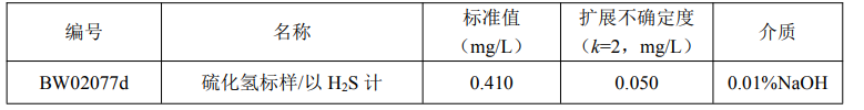 本标准物质用于水质硫化氢的分析测试及宣贯的分析方法确认与评价、仪器校准等实验室质量控制。