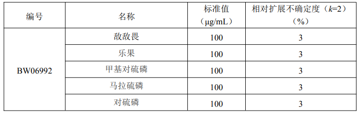 您正在浏览的产品:氯仿中5种有机磷农药混标