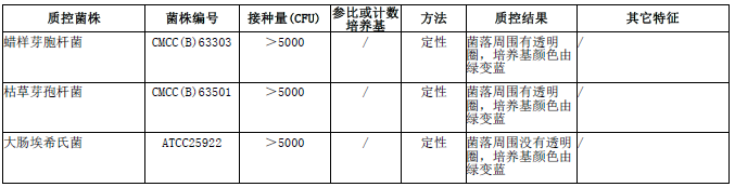 酪蛋白琼脂平板(2-8℃)微生物灵敏度试验: