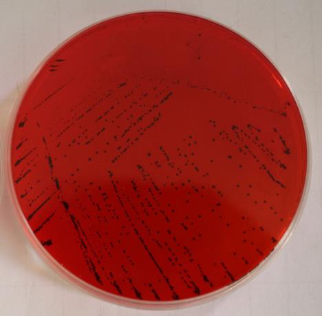 较大的黑色中心,几乎呈现全部黑色的菌落