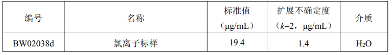 本标准溶液以重量法配制作为浓度标准值,并采用离子色谱法检测验证。通过使用满足计量学特性要求的制备、测量方法和计量器具,保证标准物质的量值溯源性。