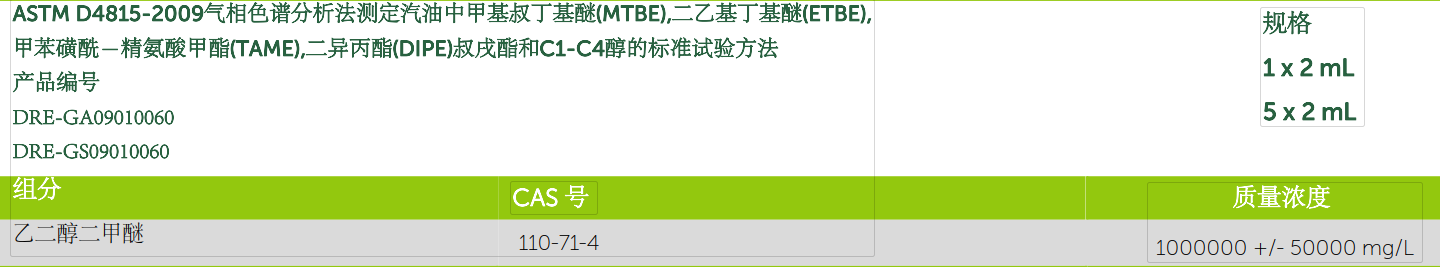 手机版:ASTM D4815-2009方法标准品/DRE-GA09010060
