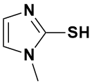 - 甲巯咪唑;1,3-二氢-1-甲基-2H-咪唑-2-硫酮;1-甲基-2-咪唑硫醇;甲硫咪唑;甲硫噻唑;2-巯基-1-甲基咪唑;1-甲基咪唑-2-硫醇