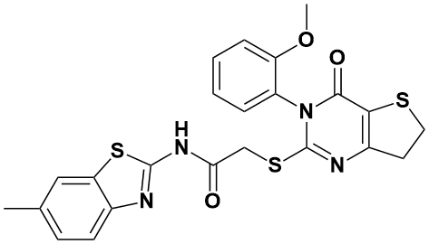2-((3-(2-甲氧基苯基)-4-氧代-3,4,6,7-四氢噻吩并[3,2-D]嘧啶-2-基)硫代)-N-(6-甲基苯并[D]噻唑-2-基)乙酰胺 2-((3-(2-Methoxyphenyl)-4-oxo-3,4,6,7-tetrahydrothieno[3,2-d]pyrimidin-2-yl)thio)-N-(6-methylbenzo[d]thiazol-2-yl)acetamide