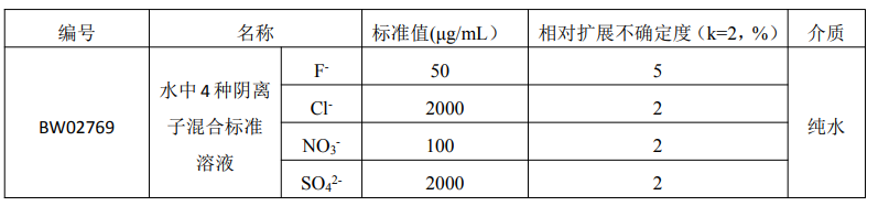 您正在浏览的产品:水中4种阴离子混合标准溶液/(F、Cl、NO3、SO4)