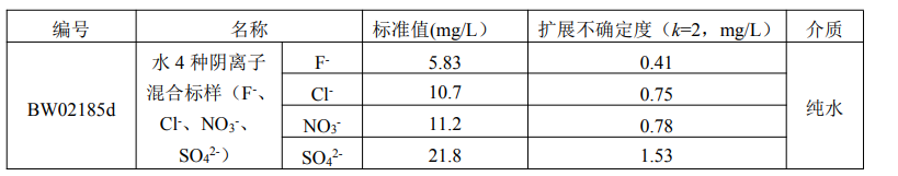您正在浏览的产品:水中4种阴离子混合标样/(F、Cl、NO3、SO4)